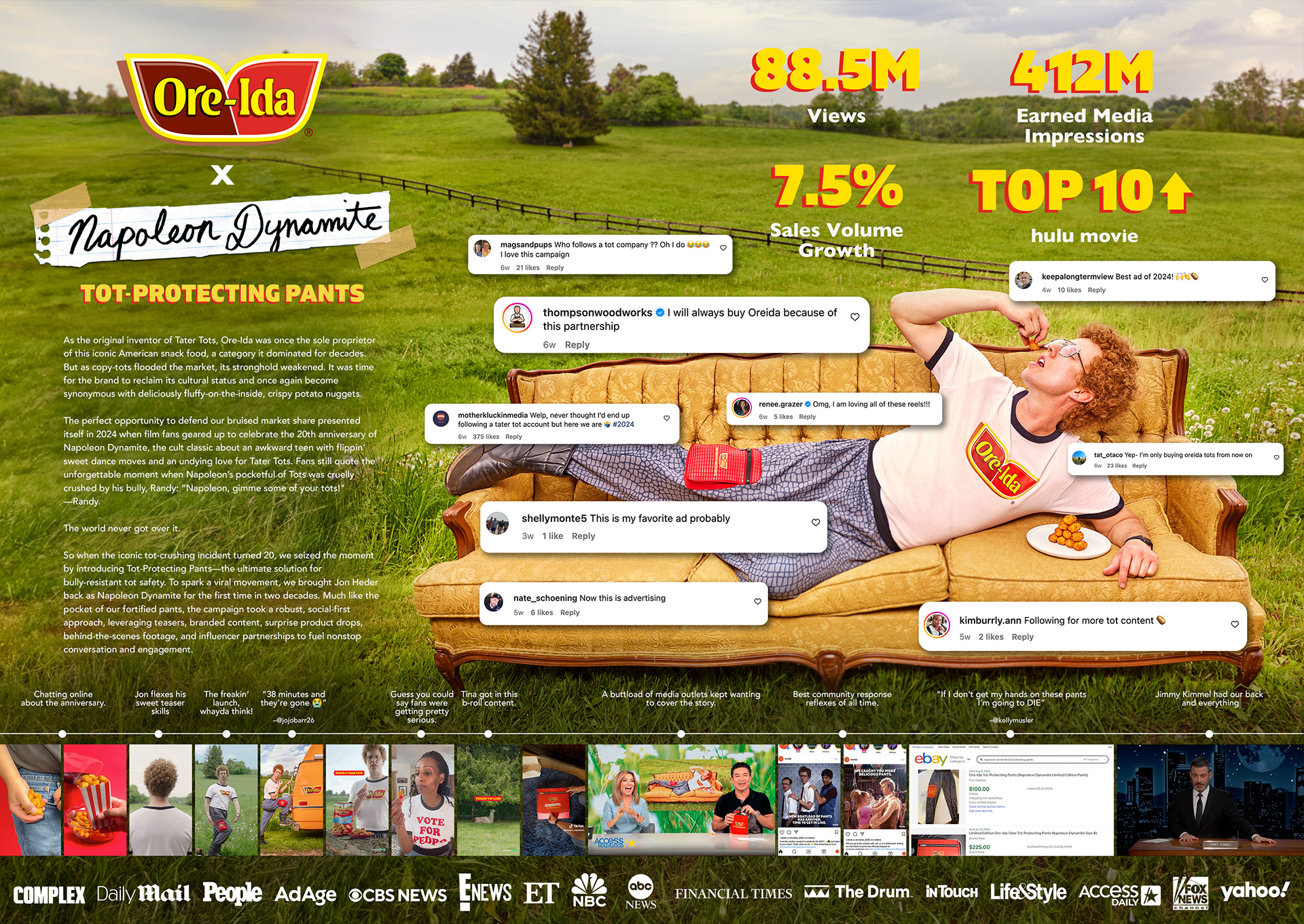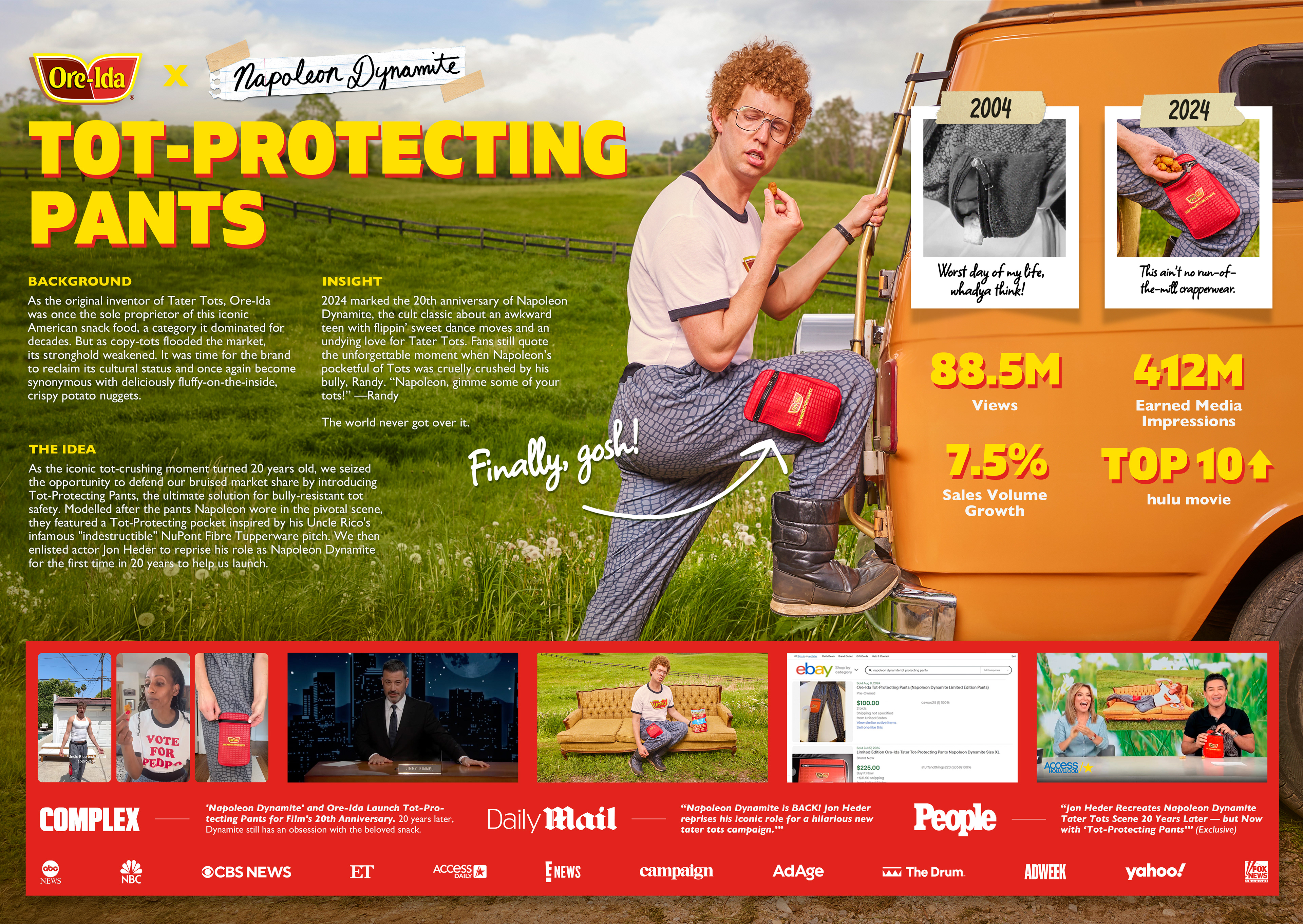 On the 20th anniversary of Napoleon Dynamite, Ore-Ida introduced tot-protecting pants to celebrate their iconic